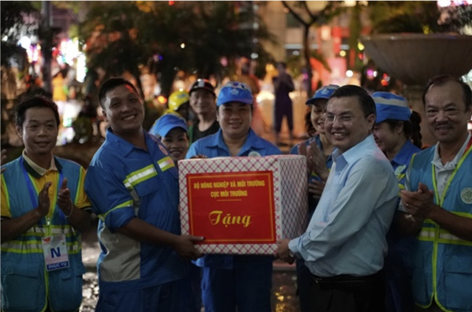 Đoàn lãnh đạo Cục Môi trường thăm, tặng quà công nhân môi trường trong dịp Đại lễ A80